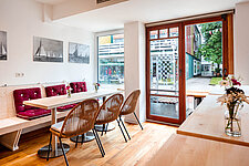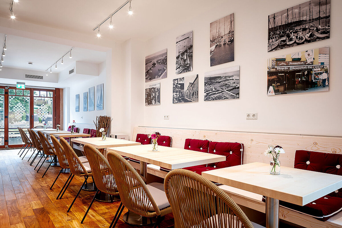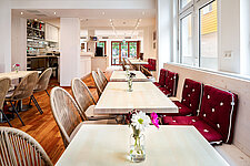 An der Bar oder an den gemütlichen Tischen, aber immer entspannt, genießen, die Gäste hier leckere hausgemachte Speisen - vom Salatteller bis zur Grillplatte. Den Abend können Sie bei einem Glas Wein ausklingen lassen.